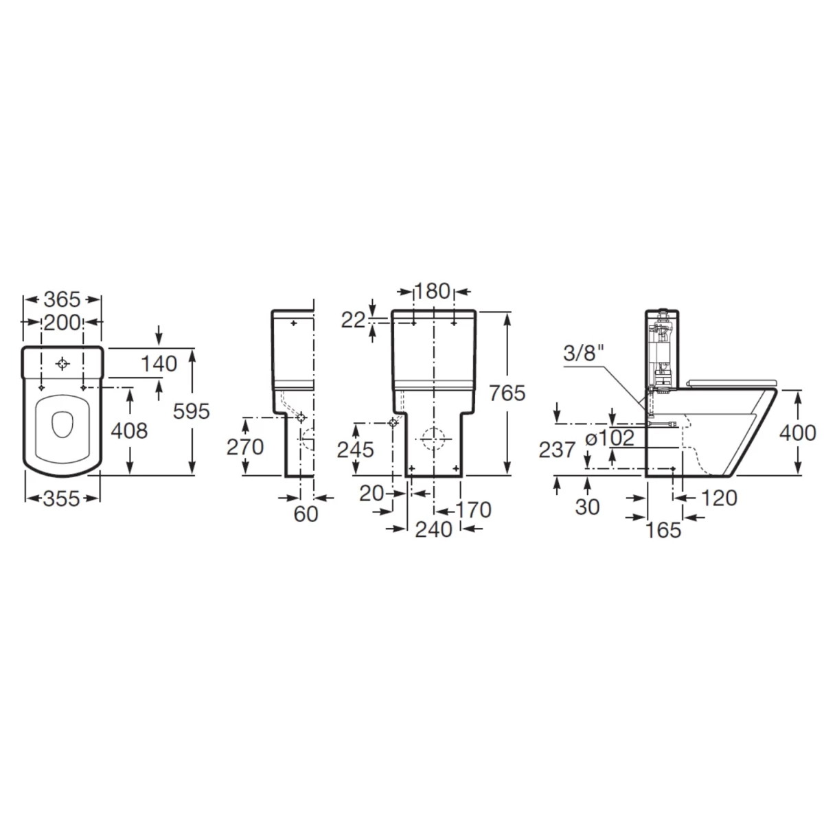 - Габариты чаши унитаза (ШхВхД): 355х400х595 мм.