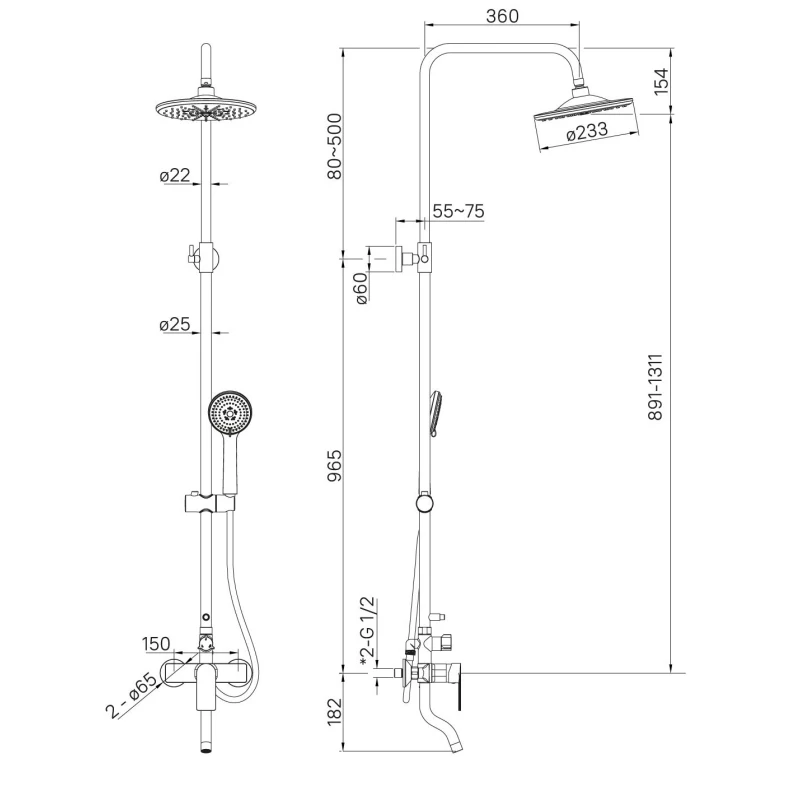 - Гибкий шланг: нержавеющая сталь, L 150 см.