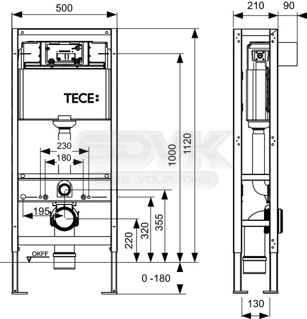 Застенный модуль (h = 1120 мм) отдельностоящий с двойной рамой для установки подвесного унитаза, 9300093 (9 300 093)