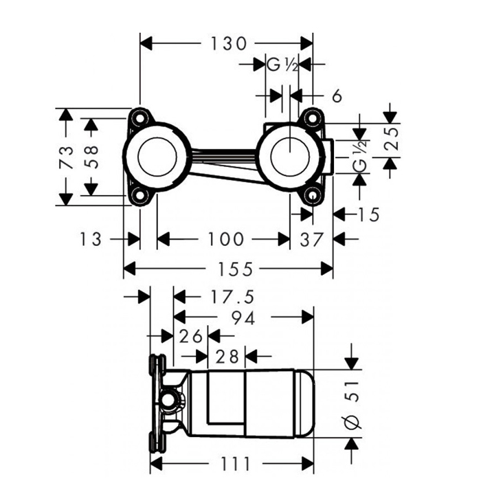 Axor 13623180 Universal Скрытая часть однорычажного смесителя настенного монтажа