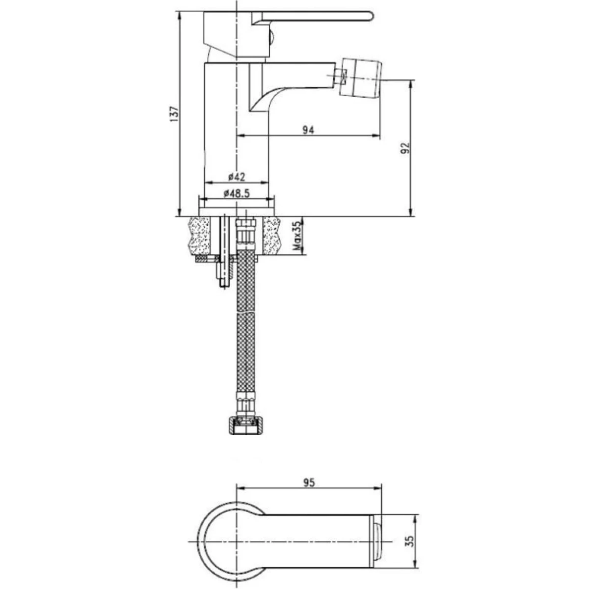 Смеситель Cersanit Brasko Black A63110 для биде, без донного клапана, черный матовый