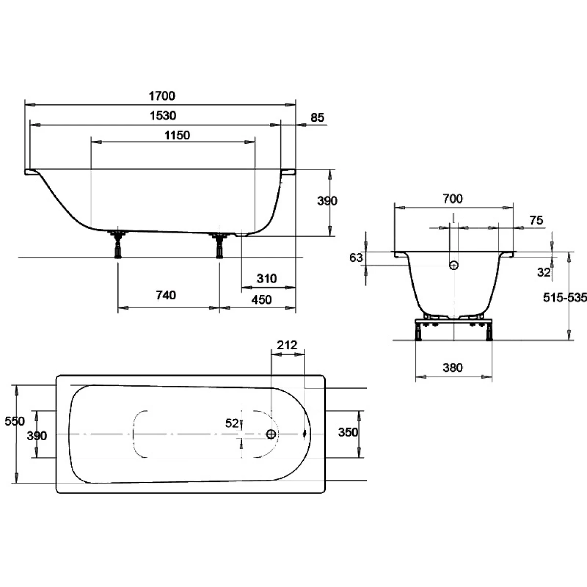 Стальная ванна Kaldewei Cayono mod. 749 274900010001 170x70 см
